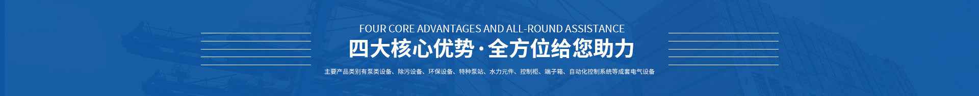 我们的业务范围 High brand awareness● 主要产品类别有泵类设备、除污设备、环保设备、特种泵站、水力元件;